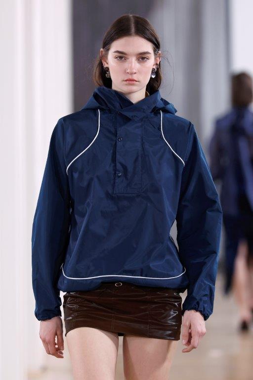 En esta primera edición, la ganadora fue María Sánchez Chicharro, cuya propuesta se integra en el desfile dentro del universo ANNUAL 26, dialogando con la paleta cromática y el lenguaje de la colección a través de una reinterpretación contemporánea de un chubasquero deportivo en azul marino y blanco, confeccionado en tafetán impermeable con detalles como ribetes que generan un efecto visual redondeado y una capucha desmontable.