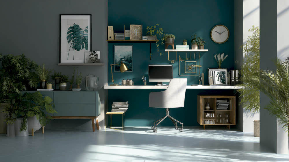Los azules con mezcla de verde, como el deep teal, el smoky jade, o los azules empolvados u oceánicos, son otros de los grandes protagonistas del año, simbolizando calma, conexión con la naturaleza y un puente entre lo tradicional y lo futurista. Estos tonos funcionan tanto como color de acento visual, como en aplicaciones de gran superficie si se busca una sensación de refugio.