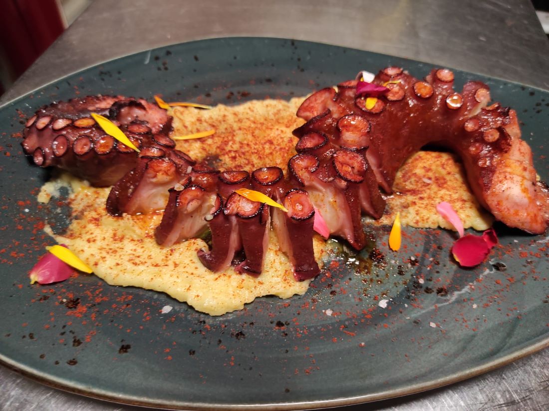 La carta de El Velero de Pacheco es muy variada, y puedes encontrar desde distintos tipos de carne hasta pescado fresco. Pero, si hay algo de lo que se sienten especialmente orgullosos es “del cachopo de ternera relleno de paleta ibérica y queso, nuestro pulpo a la parrilla con parmentier de patata y pimentón de la Vera, y nuestro salmón con empedrado de almendras y fondo de fresa”.