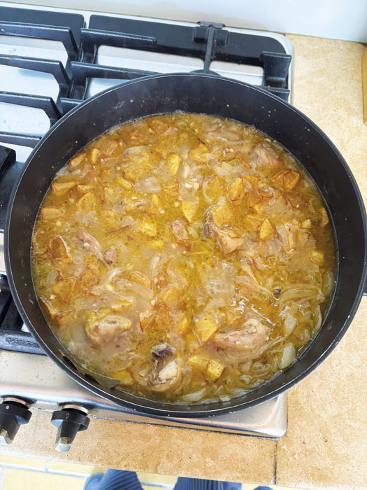 Mientras se va cocinando la carne, en una freidora freiremos unas patatas cortadas a dados, aunque este ingrediente es opcional.