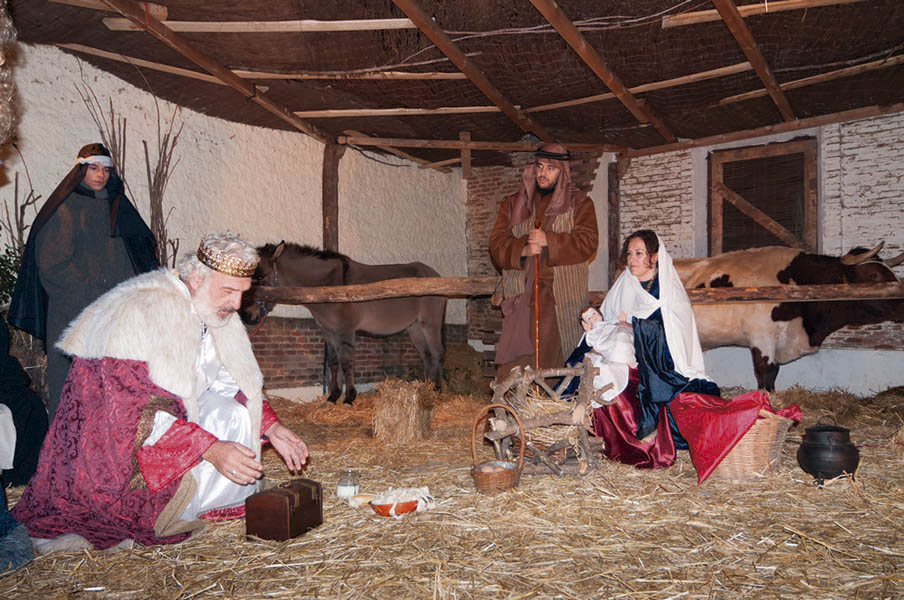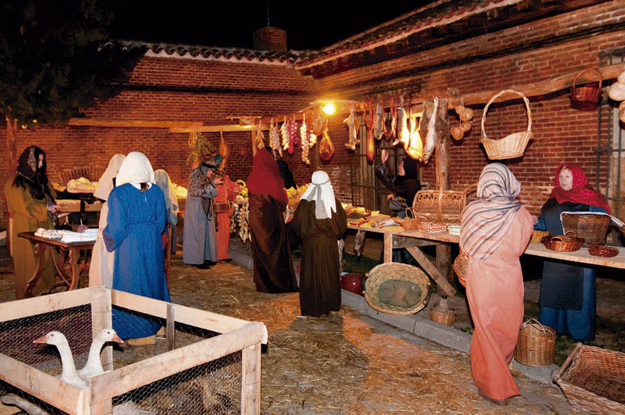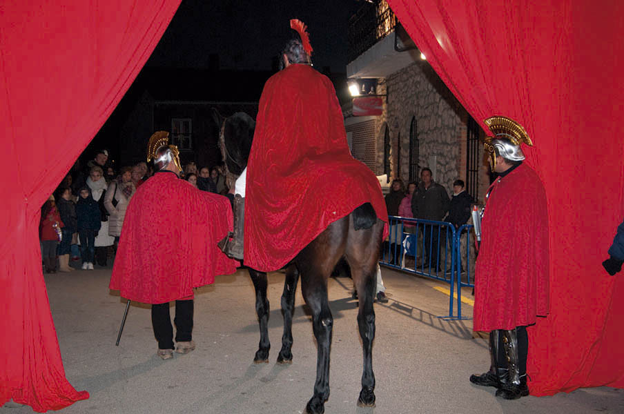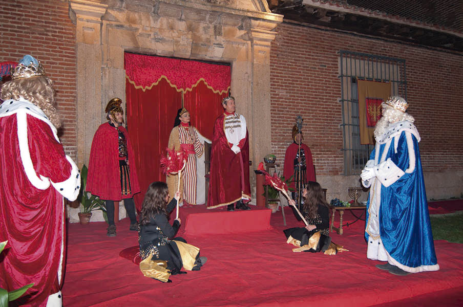 Una vez en tierra, los Reyes Magos y sus pajes, acompañados de fuegos artificiales, recorren el municipio hasta llegar al Nacimiento Viviente instalado en la Plaza Mayor. Allí se hace la tradicional ofrenda de oro, incienso y mirra al Niño Jesús, mientras los vecinos ofrecen a los visitantes castañas asadas, chocolate caliente con bizcochos, chorizos al vino y migas castellanas.
