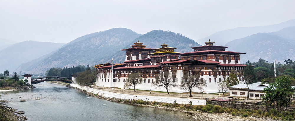La antigua capital de Bután destaca por albergar el dzong más bello del país, conocido como el palacio de la gran felicidad.