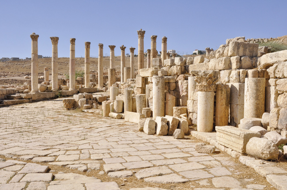 Jordania también tuvo un importante pasado romano, tal y como atestiguan sus numerosas ruinas. Jerash (Gerasa) es una de las que mejor se han conservado a pesar de haber sufrido guerras y hasta un gran terremoto, pero la arena que la cubrió la mantuvo en buen estado.